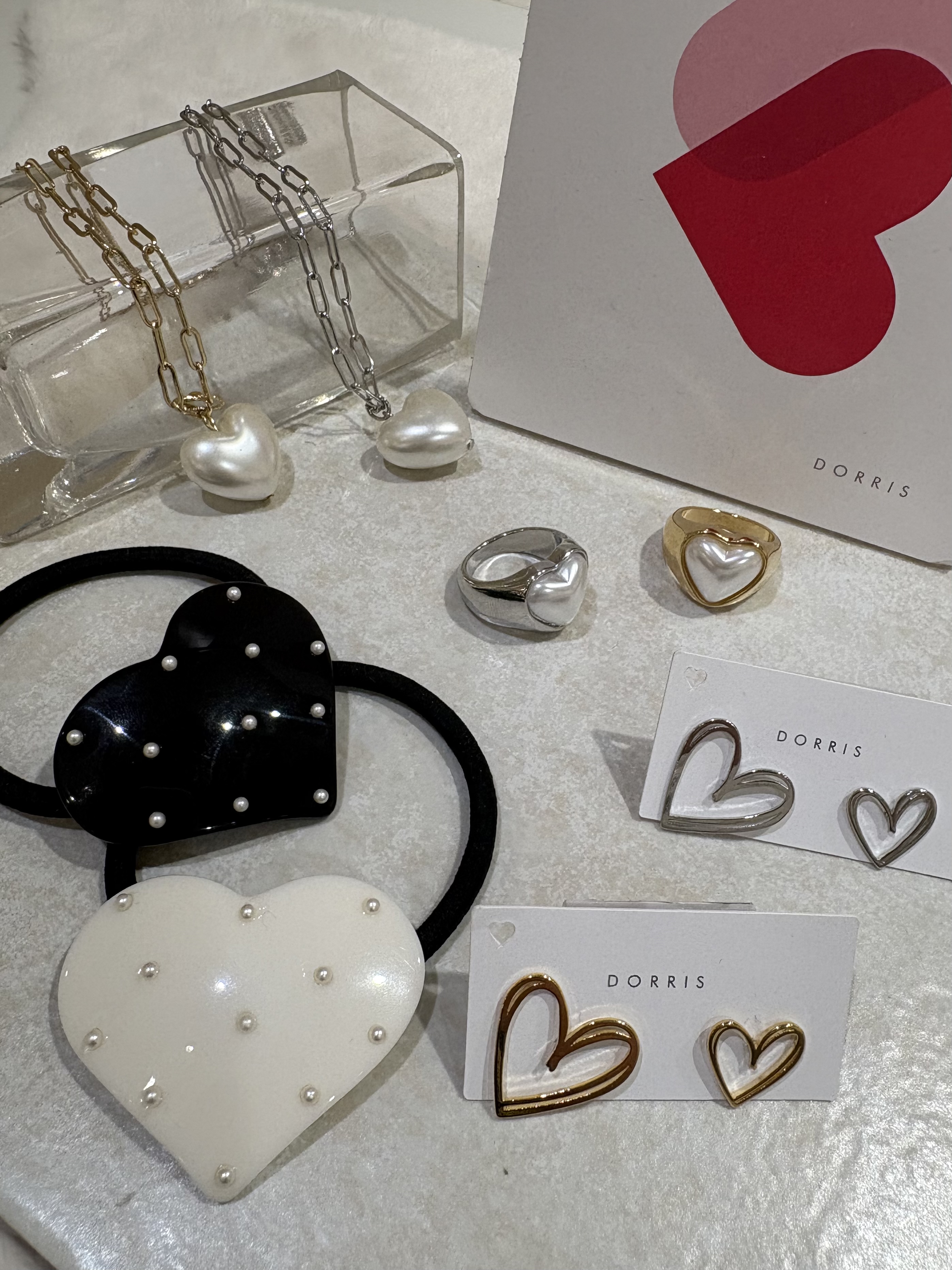 ハートモチーフアクセサリーが、毎日のコーデにさりげない幸福感をプラス。